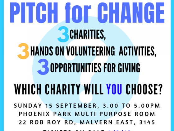sign up at https://kippitch2019.eventbrite.com.au On Sunday 15 September, come along and join us for an afternoon of learning, activity, fun, and giving! Three grassroots charities will run hands on activities for all participants. These activities are tailored to ignite young minds through the joy of learning, and inspire our next-gen leaders to go out and create … Continue reading KiP Pitch for Change 2019